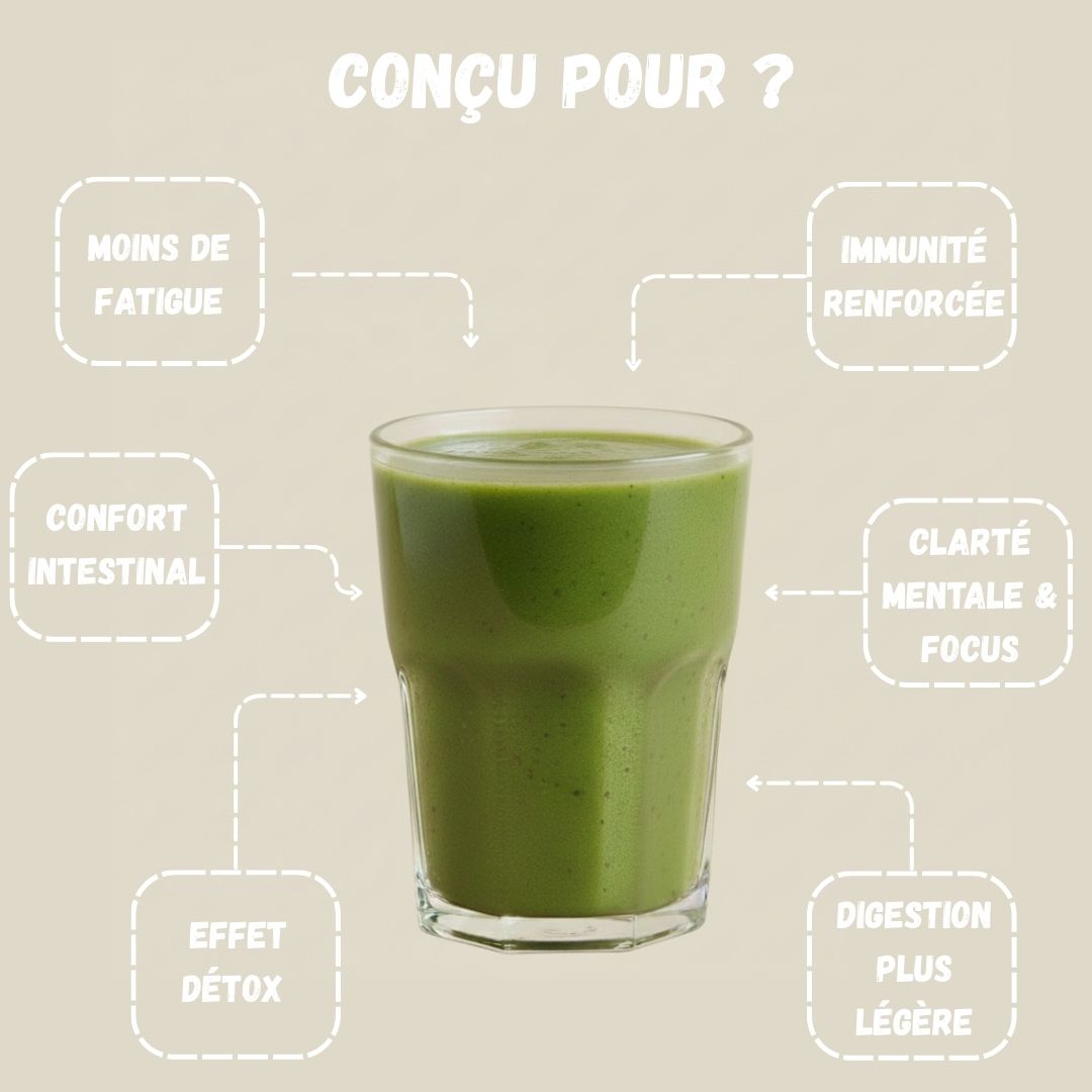 GreenUp aide à renforcer le système immunitaire, à combattre la fatigue, à soutenir la récupération et la digestion.